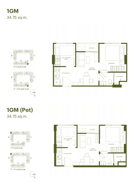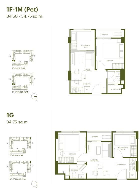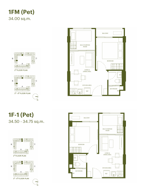 | 戶型規劃 | 1房1衛 23.00~24.75 sq.m 1房1衛 25.00~27.25 sq.m 1房1衛 30.25~33.00 sq.m 1房1衛 1多功能室 34.00~35.25 sq.m |