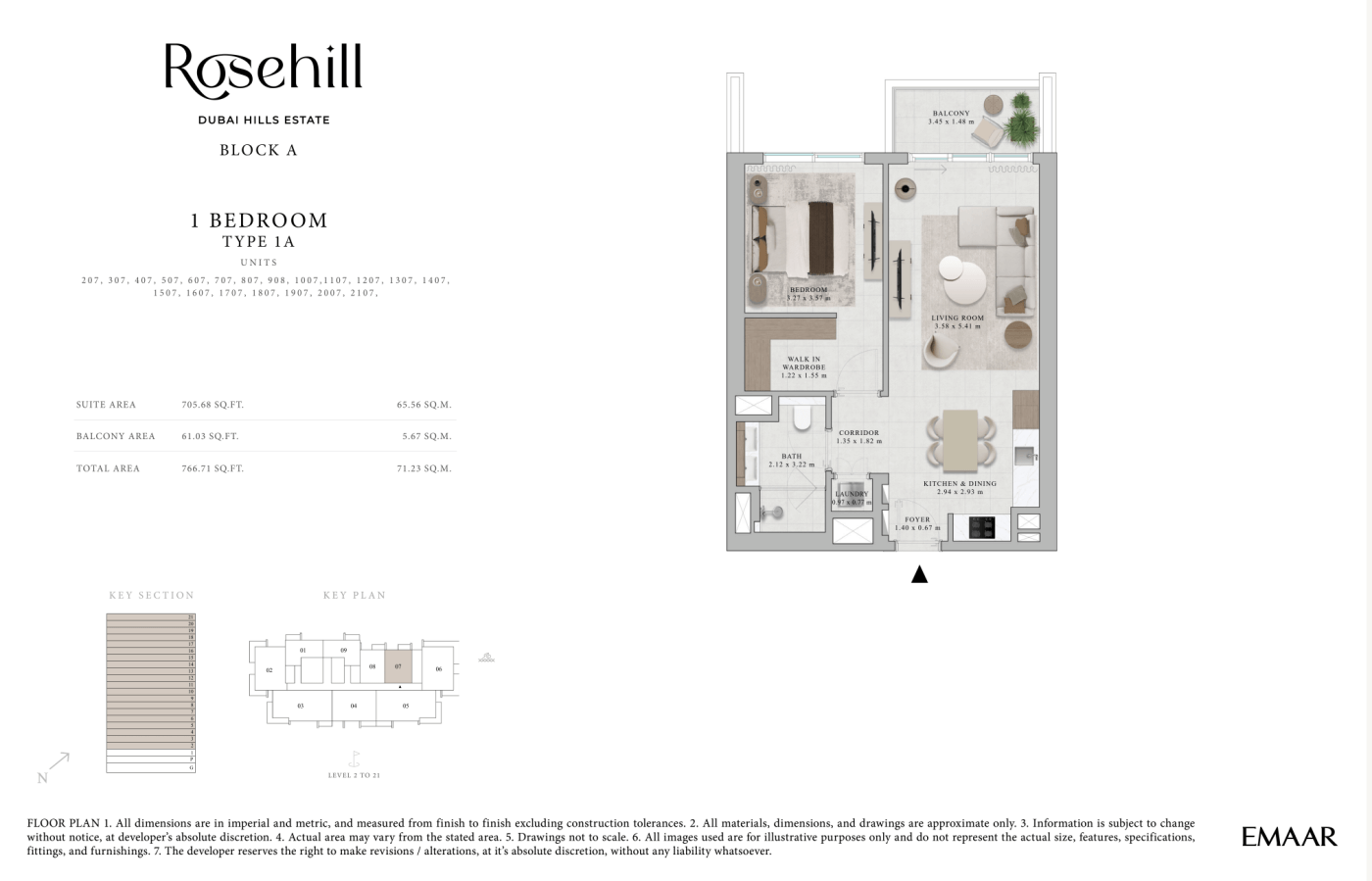 | 戶型規劃 | 一房 共197套 741~844平方英尺 160萬迪拉姆起 兩房 共118套 1081~1365平方英尺 231萬迪拉姆起 三房 共38套 1656~1799平方英尺 356萬迪拉姆起 |