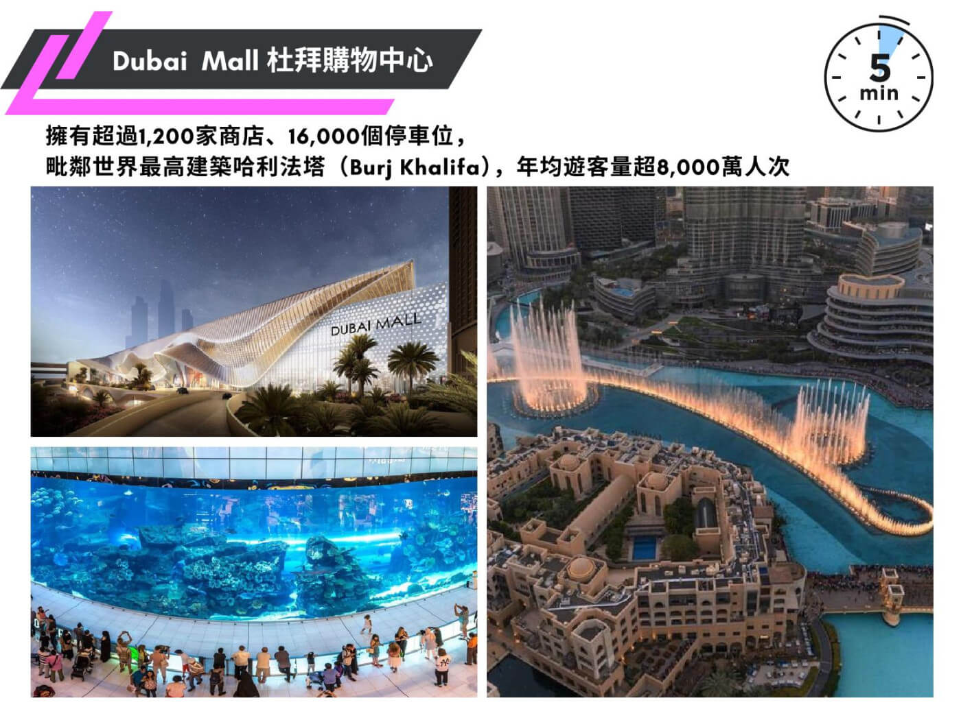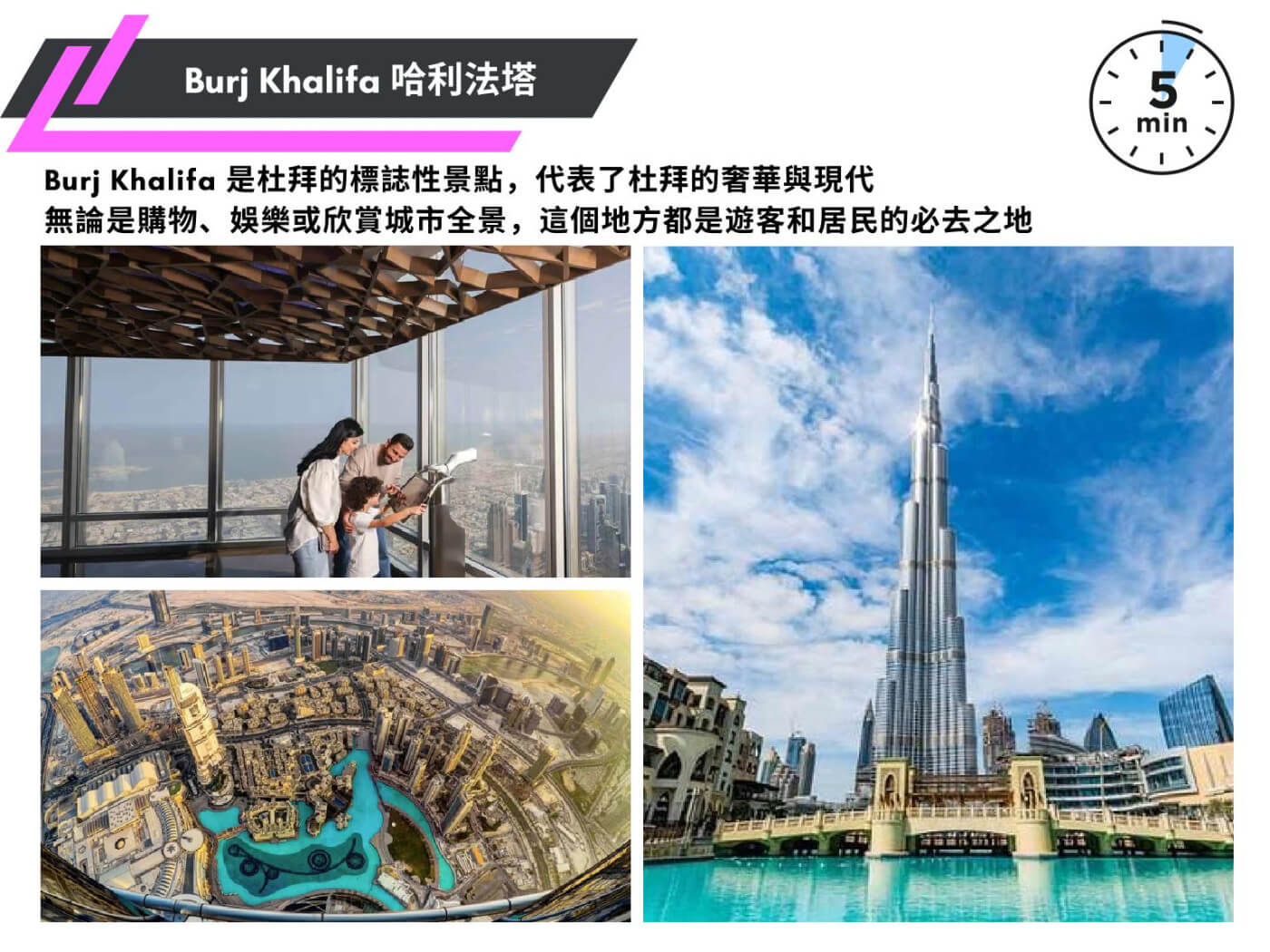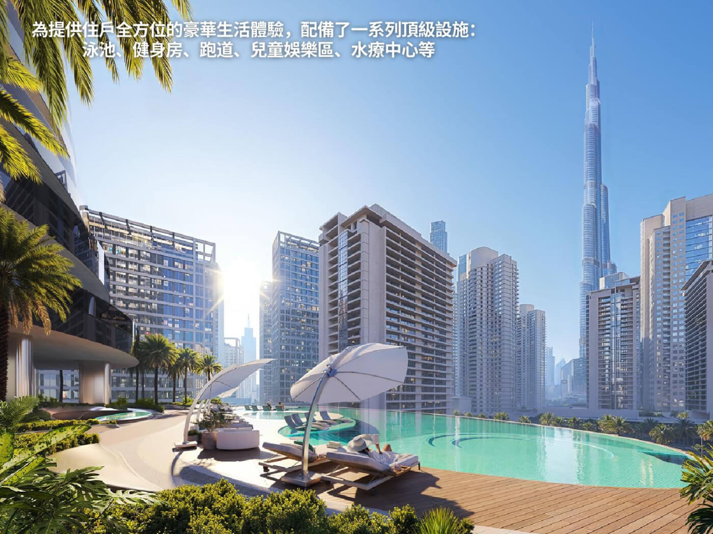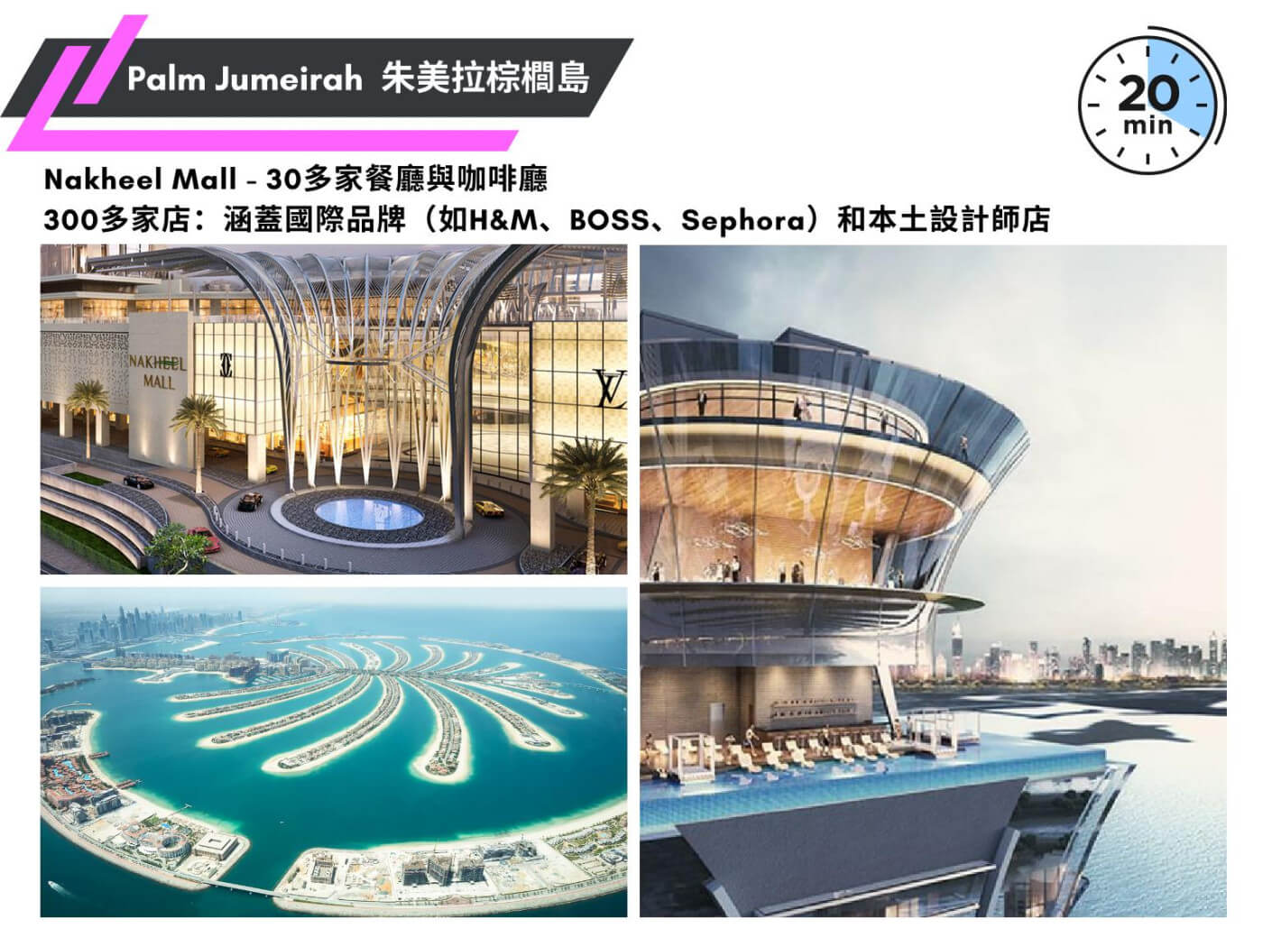 | 接待大廳 | 商店 | 游泳池 | 空中花園 | 觀景台 |