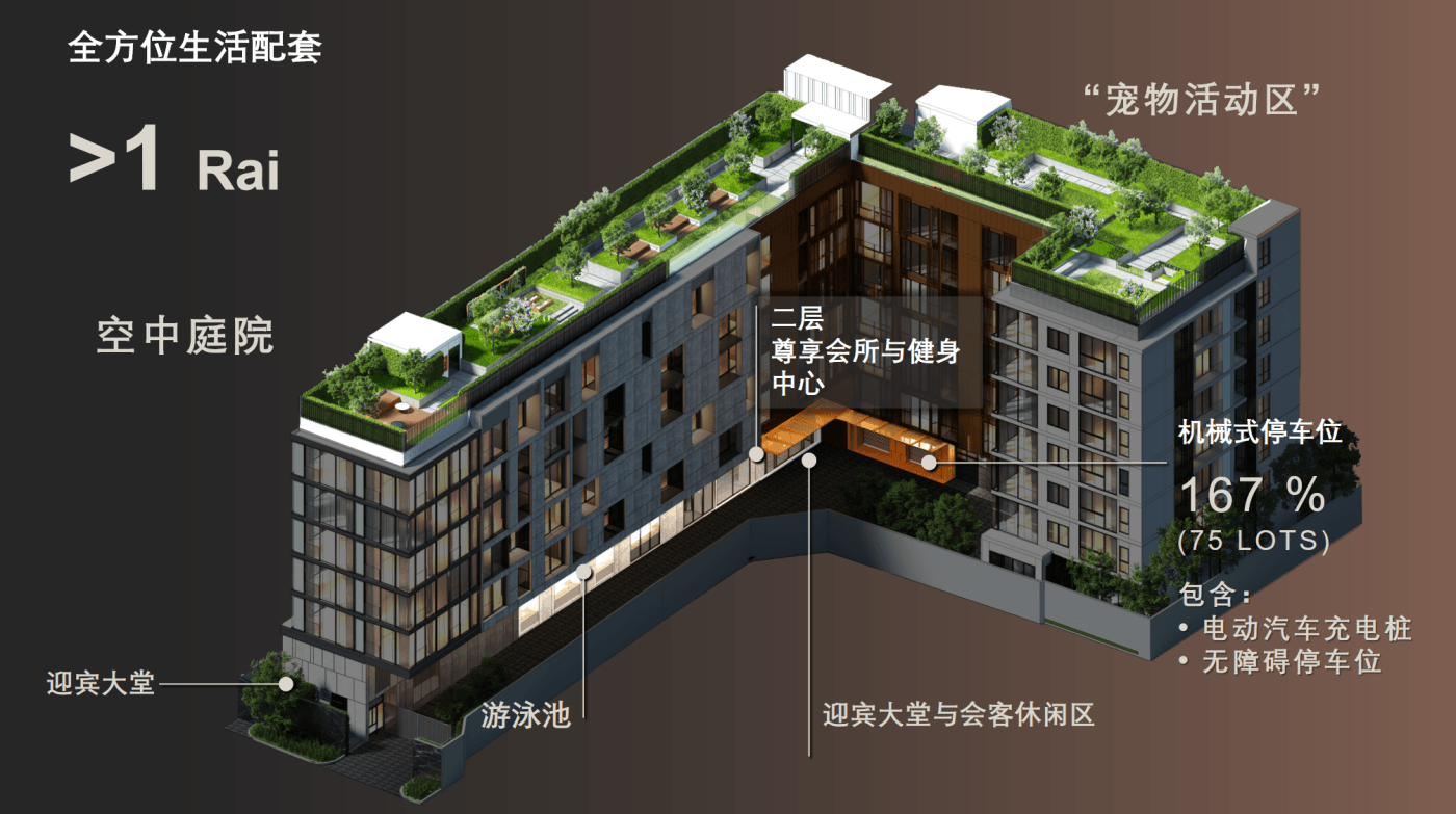 | 花園 | 共享工作區 | 健身房 | 停車場 |